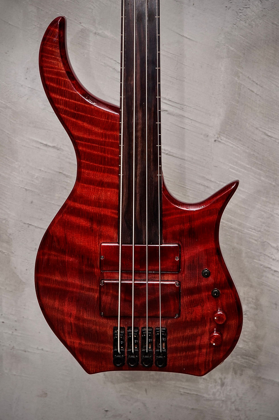 Scarlett was built between 2014 and 2015. Serial number 1513. It was a sweet sounding fretless. I was lucky enough to buy it back and went on to make an even sweeter sounding one. So much so that I decided to keep it The only parts that are still original are the mahogany core and the wenge/padauk neck. Everything else was replace, reshaped, re-re... you name it. The Scarlett is second only to my F6 - by a hair. But that's an unfair comparison.